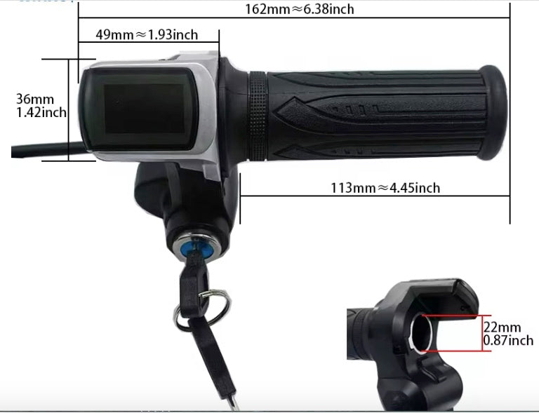 This is a basic 36V twist throttle with ON/OFF key and shows battery charge level